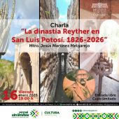 Este viernes 16 de enero, a las 19:00 h, tenemos la charla "La dinastía Reyther en San Luis Potosí. 1826-2026", impartida por el Mtro. Jesús Martínez Melgarejo. Entrada libre, cupo limitado....