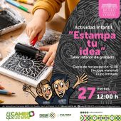 Este viernes 27 de marzo, a las 12:00 h, tenemos la actividad infantil "Estampa tu idea". La cuota de recuperación es de $100 y ya incluye materiales...